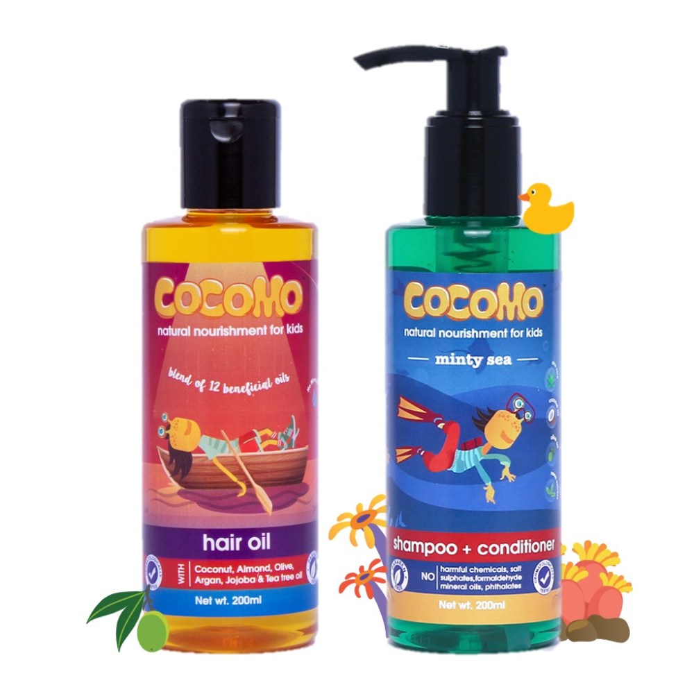 Cocomo Minty Sea Shampoo & Conditioner gently cleans and nourishes your child's hair. It is a pH balanced shampoo, thus tear-free! It is infused with pure, natural ingredients which help in making your child’s hair healthy, strong and frizz-free.